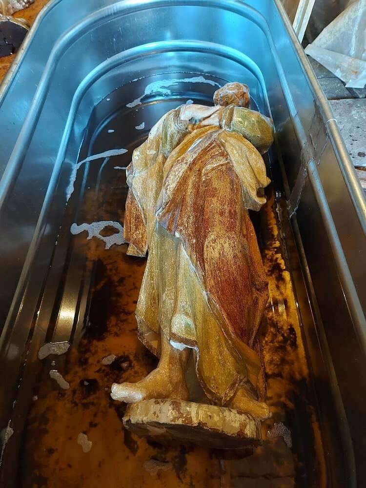 Po odparení rozpúšťadla, čo trvá podľa veľkosti objektu cca 15-40 a viacej dní je možné pristúpiť k samotnému reštaurovaniu.
